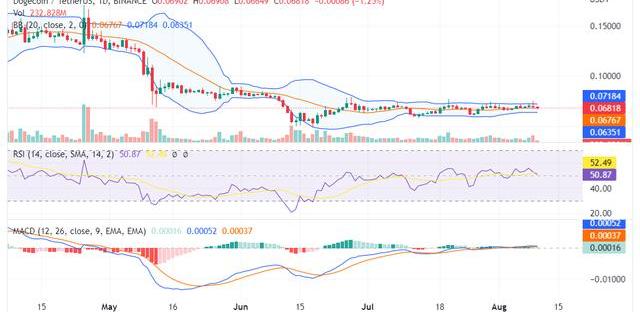 2022年8月10日日線圖上的狗狗幣價格分析將考慮以下日線圖上的3個主要指標呈現的數據