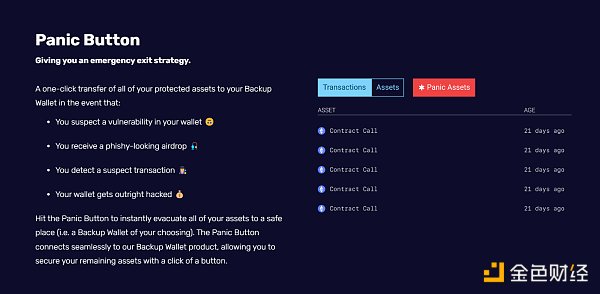 Web3是一個Web3安全提供商,可以讓你創建自定義備份錢包+緊急按鈕系統;如果你受到攻擊,甚至只是受到驚嚇,你可以使用平臺的“Panic”功能將所有或任何剩余資產轉移到預先指定的備份錢包中。