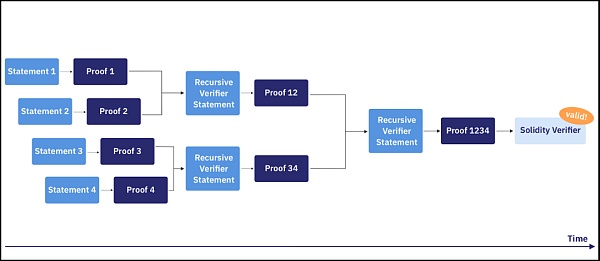 ZK Rollup提高了吞吐量。隨著比特幣網絡上越來越多的交易需要在每個Rollup層被證明有效,創建必要的有效性證明的難度也隨之增加。ZK Rollup對創建這些證明所需的計算的解決方案是使用遞歸證明組合來并行化。遞歸本質上是“證明證明的有效性”,因此許多計算機可以證明不同交易的有效性,然后這些證明最終可以組合成一個證明,從而允許多臺計算機同時進行水平擴展,從而有助于證明一個交易的有效性。SNARK 和 STARK 證明都可以實現無需信任的遞歸證明組合。