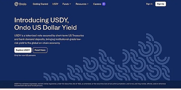 除了 MakerDAO、Synthetix 和 Tether 等現有參與者之外,一種名為 Ondo Finance 的新 RWA 協議最近也引起了人們的關注。Ondo Finance 旨在提供對各種 TradFi 資產的訪問,例如美國貨幣市場和鏈上美國國庫券。對于無法進入美國市場的非美國投資者來說,這是一種極其便捷的方式。