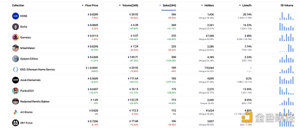 24小時內銷售前十的NFT 數據來源:NFTGO