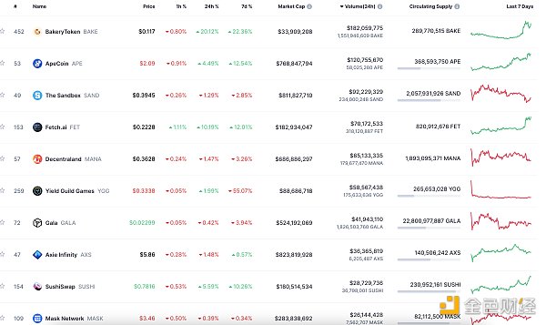 24小時NFT交易量、交易量前十項目 數據來源:Coinmarketcap