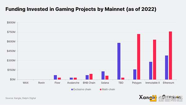 Immutable是行業內頭部Web3游戲項目,該平臺通過預構建的解決方案簡化了Web3游戲的創建流程。在2021年4月主網上線后,Immutable平臺上發布的如《Gods Unchained》和《Illuvium》游戲的數據表現一直保持在較高水平。Immutable的增長是顯而易見的,其與主流Web2娛樂公司建立了一系列合作伙伴關系,其中最著名的是Gamestop、Disney和 Tik Tok。在2022年,大部分區塊鏈游戲資金流向了以太坊、Immutable 和 Polygon,顯然加密風投和游戲開發商在Immutable壓了重注。