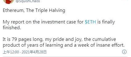 加密貨幣投資者NikhilShamapant曾寫道,供應沖擊太大,無法定價。今年4月,當ETH的價格接近當前水平時,他計算出EIP-1559的拋售壓力將下降約30%,這意味著市場上可供購買的ETH將大幅減少