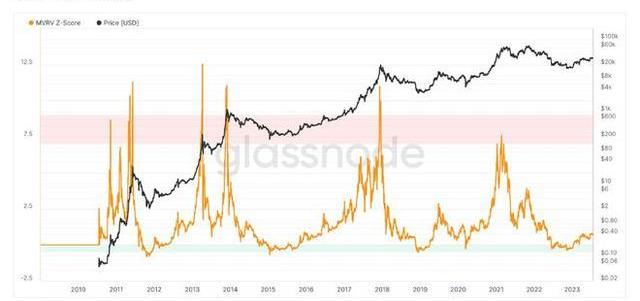 長期趨勢指標MVRV-ZScore以市場總成本作為依據,反映市場總體盈利狀態。當指標大于6時,是頂部區間;當指標小于2時,是底部區間。MVRV跌破關鍵水平1,持有者總體上處于虧損狀態。當前指標為0.69,進入復蘇階段。
