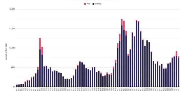 3、需要注意的是,比特幣礦工收入在六月份出現下跌,降幅達到14.5%,降至7.833億美元,同時以太坊質押收入也出現下降,六月跌幅為24%,降至約1.195億美元。