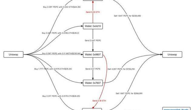 例如,Lookonchain透露,據稱與Pepe團隊有關的五個地址在流動性較弱的市場上賺取了123萬美元的利潤。他們以低價購買了8.87萬億個PEPE代幣,并在Uniswap上以更高的價格出售了他們持有的90%以上的代幣。
