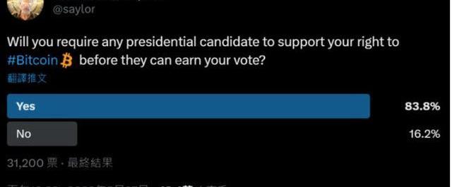 截至出稿,有超過3.1萬推特用戶投票,其中,約83.8%投下贊成票,另有16.2%投下反對票。