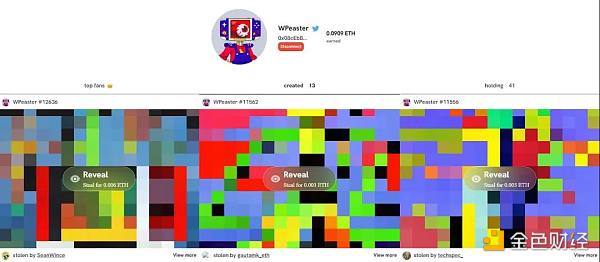 NFT 持有者可以 mint 隱藏的圖像,其他人可以通過支付 ETH 來“竊取” NFT,從而獲得并揭示該 NFT 的內容。