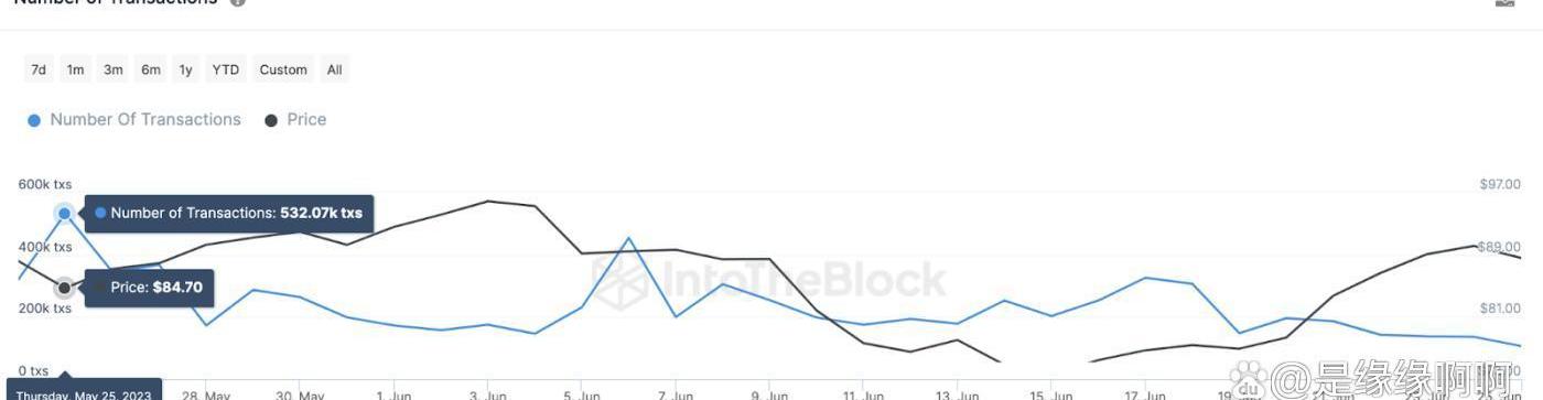 萊特幣(LTC)價格調整,2023年6月交易數量。來源:IntoTheBlock