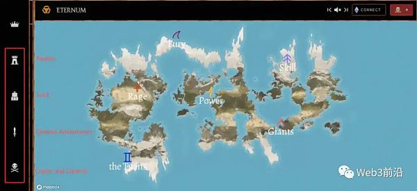 下面的圖片展示了 Atlas(世界地圖),它總共包含了 16 個國家,比如 FOX、Power 和 Giants。所有這些國家都源自于 Loot 的元數據。在格局復雜、國家多樣的角度上,Atlas 與《權力的游戲》有著很多相似之處。此外,諸如 Realms、Loot、Genesis Adventurers、Crypts and Caverns 等 NFT 項目也遵循了 Atlas 中這些國家的基本設定。