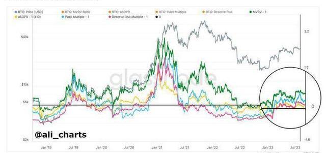 其他鏈上指標也預示著比特幣的看漲勢頭。Martinez解釋道:“所有主要的BTC震蕩指標繼續徘徊在0線上方。這表明持續的價格調整可能只是曇花一現”。