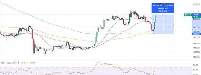 然而,在過去兩天里,拋售加密資產的投資者錯過了一次撕心裂肺的反彈。比特幣的最新交易價格為24,000美元左右,較上周五的低點上漲了24%,令人震驚。