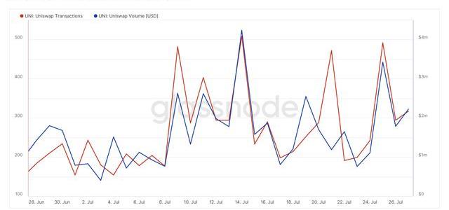 Uniswap的鏈上指標也指向類似的結果,特別是在上周的回撤之后。