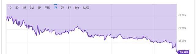 現有數據顯示,GBTC現價較資產凈值折讓45.08%。這是創歷史新低,部分原因是最大的持有者DCG目前正面臨財務困境的擔憂。