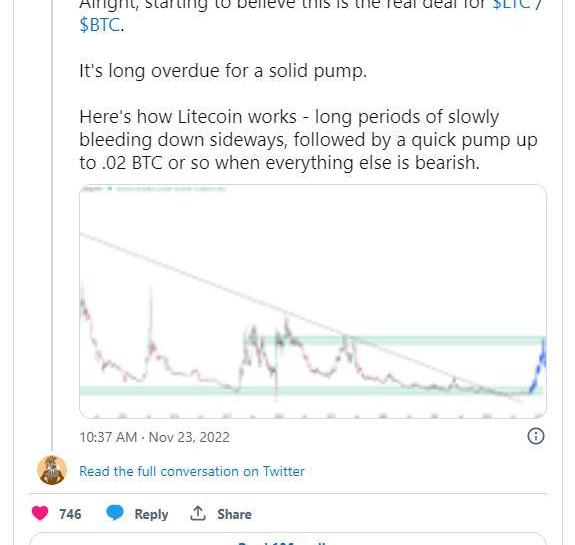 化名加密貨幣分析師Kaleo最近告訴他們超過50萬的Twitter粉絲,LTC最近的飆升似乎是“真正的交易”,因為這種加密貨幣“早就應該出現穩固的上漲”。