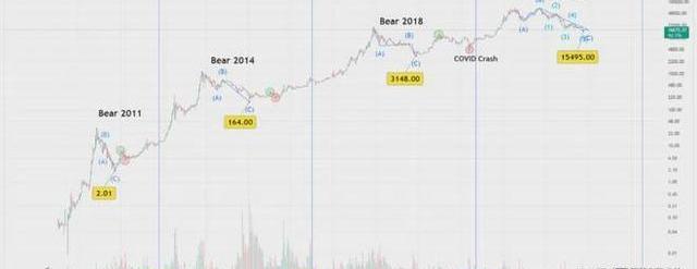 此外,根據艾略特波浪理論,每個熊市期間的下行走勢均采用ABC修正的形式。2022年最近的熊市也可以通過這種修正的形式捕捉到。