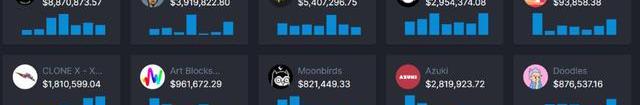 按市值排名,BAYC、CryptoPunk、MAYC和Otherdeed等收藏品類NFT項目持續領先。在藝術類項目中,最具代表性的是ArtBlocksCurated。其中,像CryptoPunk這樣項目不僅是創建時間早,而且是NFT領域中最具象征地位的頭像。