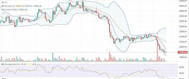 由于價格在22,000美元支撐區域附近已經疲軟,過去兩天賣盤加劇。根據比特幣價格分析,它迅速跌破該標記,跌破20天指數移動平均線,接近22,000美元。自那以后,延長的行動力度加大,使價格跌至20,500美元以下。