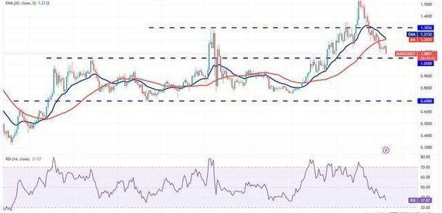 MATIC/USDT貨幣對可能下滑至1.05美元的強勁支撐位,多頭將試圖保護該水平。如果價格從該支撐位反彈,該貨幣對可能會回調至移動平均線。