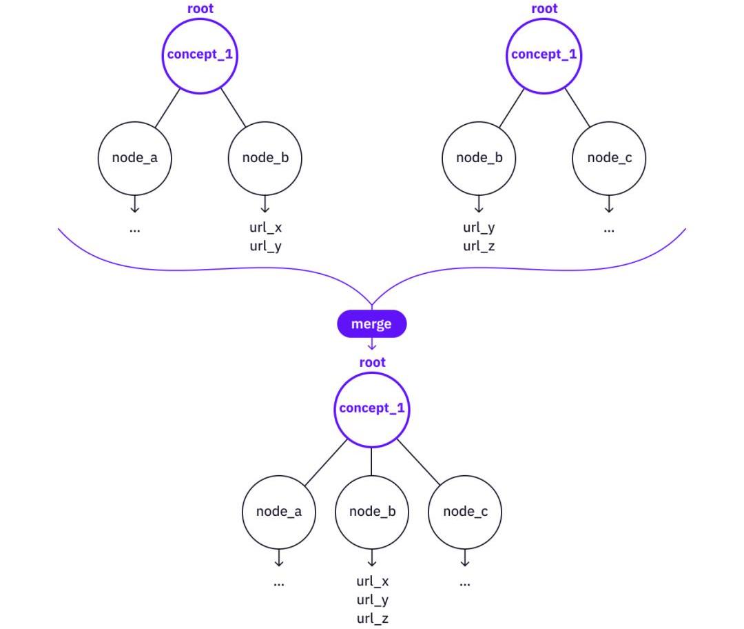 添加子樹-為具有完整節點和葉子的知識樹引入必要的子節點合并兩個相同概念的樹