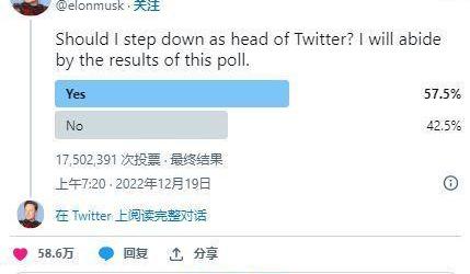 不要拐彎抹角:周三,推特老板埃隆·馬斯克首次在他本周進行的推特民意調查中發表講話,數百萬用戶投票支持將他開除,并表示他將辭去公司最高老板的職務,但前提是他確定了新的首席執行官。