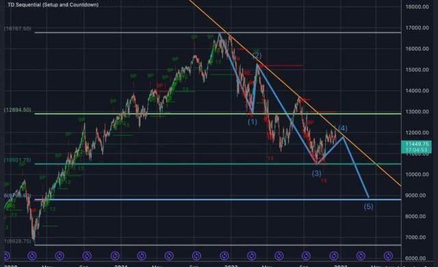 “正如我們一直在寫的那樣,第四季度的反彈已經形成了完美的第4波,所有市場的最后第5波走低——標準普爾/納斯達克、2年/10年、美元和BTC/ETH,”它表示。