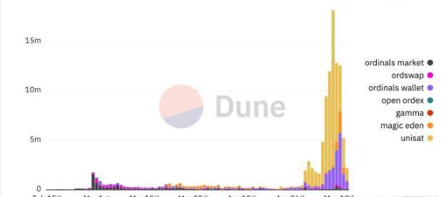 圍繞Ordinals的興趣基本上沒有受到這些評論的影響。DuneAnalytics的數據表明,Ordinal交易量在過去幾天繼續增加。