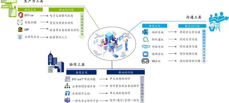 ▲數字化辦公市場可細分為生產力工具、溝通工具和協作工具三類