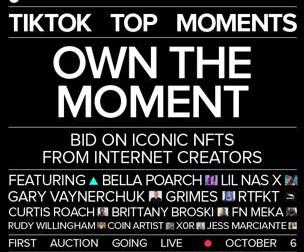 2021年10月1日,TikTok宣布推出首個數字收藏品系列《TikTokTopMoments》。《TikTokTopMoments》由社區定義創作者設計,并由他們所創作的熱門視頻啟發。為了宣傳TikTok推出首個數字收藏品,2021年10月3日TikTok買下《紐約時報》的整版廣告宣傳,根據廣告的介紹,TikTok未來將引入數字收藏品以獎勵內容創作。