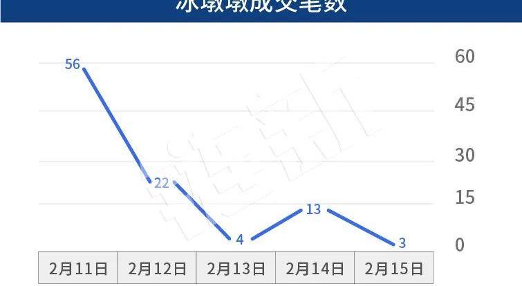 自2月11日開始,冰墩墩NFT成交量和地板價一路下滑,2月15日全網成交數量僅為3例,成交量較2月11日下降92%。最低的成交價也跌至340美元,比高點下跌81%。
