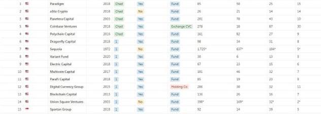 上圖為排名前21的web3風投公司,全部數據見:https://codygarrison.notion.site/Web3-VC-Database-2022-de9c391f8dd14a8a9a3e01a69f4e0b7f,讀者朋友可收藏。
