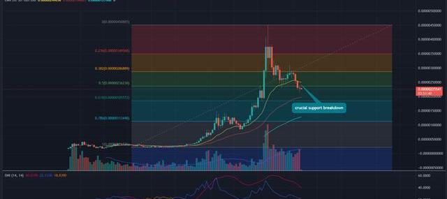 指數移動平均線:在61.8%FIB附近波動的50EMA斜率0.00000185美元增加了該水平的支撐強度。