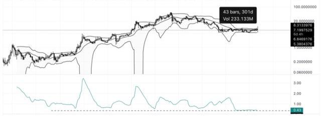 LINKUSD已在近300天的交易區間內徘徊,并且還在不斷增加,表明未來將大幅上漲。低波動階段導致了Chainlink歷史上最緊張的每周布林帶。