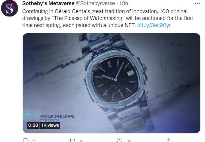XRP/HKD-2.26%巴比特訊,12月22日,蘇富比宣布將于明年2月至5月推出著名鐘表設計師GéraldGenta“時間的象征"系列拍賣會。據悉,該系列拍賣會將包括100件原創設計,包括其最有代表性的設計,一些從未見過的私人委托作品,以及一些創新、前瞻性和獨特腕表設計。為了繼續Genta的創新遺產,并與大師的生活和商業伙伴EvelyneGenta合作,每幅原創水彩畫都將與獨特的NFT相配。每一個NFT都將配有藝術數字復制品及真實性證書。對于特定的作品,還將附有從未見過的多媒體內容。