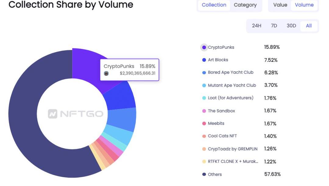 -不同系列的NFT市值占比數據來源:nftgo.io-