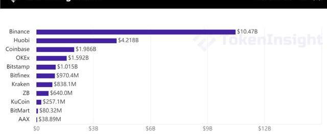 BTC-USDT交易對本周累計交易量(注:Coinbase與Bitstamp為BTC-USD交易對)來源:tokeninsight.com