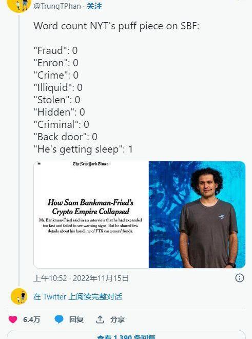 加密社區開始關注紐約時報關于SamBankman-Fried的報道。這篇題為“SamBankman-Fried的加密貨幣帝國是如何崩潰的”的文章講述了交易所是如何崩潰的。