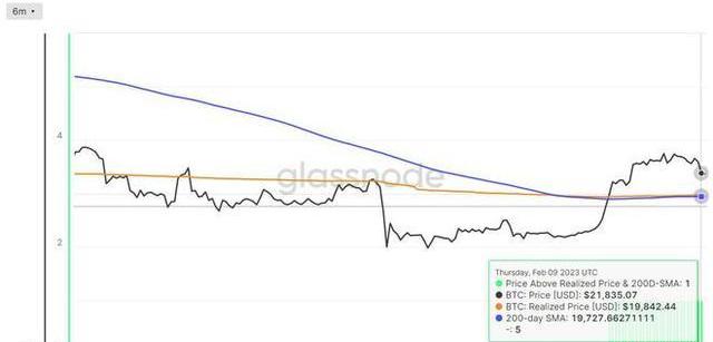 可能會跌至20,000美元以下的水平,這可能會觸發在20,500美元至21,500美元供應區域做多的短期投機者的新止損。然而,隨著比特幣接近其200日移動平均線和已實現價格,預計逢低買家將急切等待大量買入比特幣。