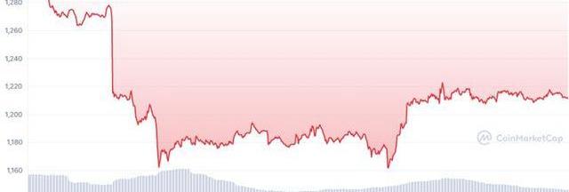 12月16日,ETH在1,260美元和1,290美元之間波動,但在當天的后半段深度跳水。ETH在幾個小時內從1,277美元跌至1,215美元。然而,這并不是下跌的底部,因為ETH在第二天進一步下跌。