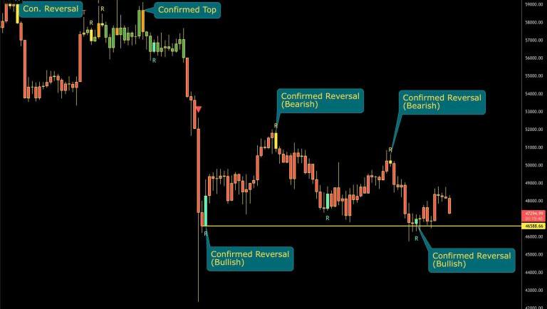 期權交易員和化名為JohnWick的Twitter用戶則針對比特幣近期價格走勢提供了更詳細的分析,他發表一張K線走勢圖,當中標記了過去兩周內,比特幣市場在多空拉鋸中的反轉點。