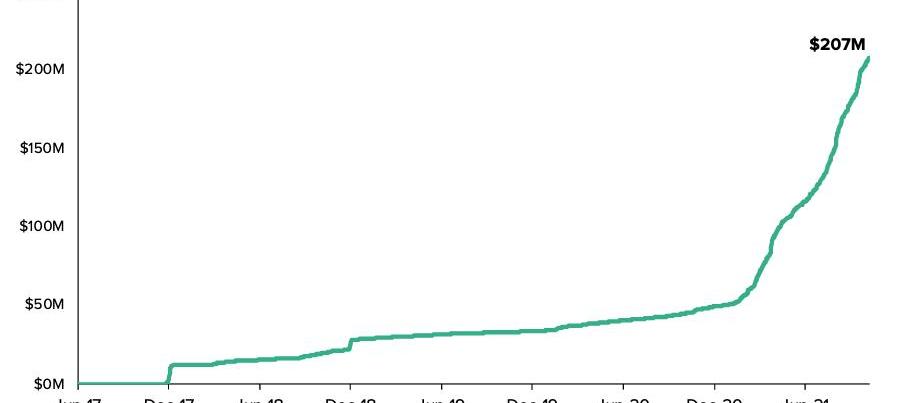 2021年第三季度全球NFT垂直投資活動對加密行業的資本投資最近開始加速,但與Facebook等公司計劃投資的100億美元以及其他公司和VC可能跟進的金額相比,元宇宙還處于相當早期的階段。