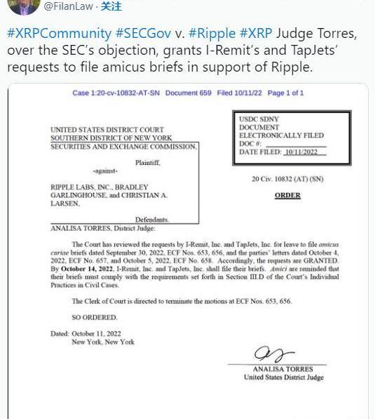根據最近的報道,主持此案的法官已允許多個第三方加入訴訟。據報道,美國證券交易委員會反對這一結果,因為獲得批準的各方傾向于瑞波幣。
