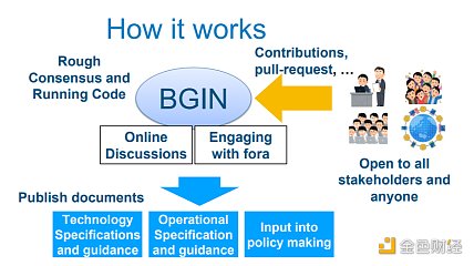 而對于大家比較關注的運作模式,BGIN將對全球所有的參與者開放,大家可以自由發起研究議題,形成工作組或者學習組,按照BGIN的方式展開公開討論和共同研究,并最終發布研究成果或者議題指南,供全球的監管者和各參與方參考。