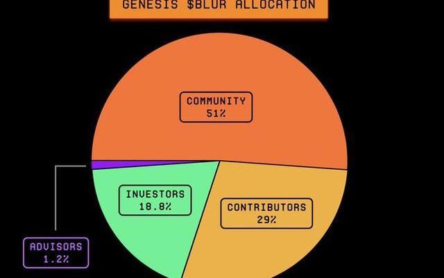 昨天Blur正式公布了代幣分配,總量為30億社區51%、團隊和貢獻者29%、投資人18.8%、顧問1.2%其中屬于社區的51%中的3億6千萬已經于昨天空投,第二輪空投將繼續空投1.17億具體分配如下圖: