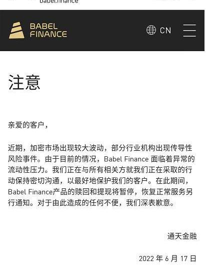 加密機構破產病蔓延到了BabelFinance身上,在被感染之前,它已經是破產過的機構了。