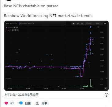 ParsecFinance的數據顯示BaseNFT交易呈上升趨勢,尤其是RainbowWorld系列,這違背了更廣泛的NFT市場趨勢。BaseNFT的增長表明對市場有潛在的積極影響。