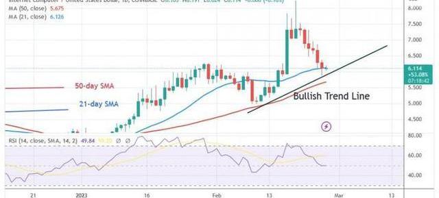 互聯網計算機(ICP)已升至移動平均線上方,并在看漲趨勢區域交易。在之前的價格走勢中,買家將山寨幣推至其之前的歷史價格2022年9月11日。盡管重新測試了7.82美元的歷史價格水平,但看漲勢頭未能持續。加密貨幣的價格已跌破21天移動平均線,表明下跌。價格柱位于移動平均線之間,表明加密貨幣可能在一個范圍內移動。在相對強度指數的第14期,山寨幣處于49級。這意味著供需平衡,這意味著山寨幣的價格已達到其均衡水平。山寨幣本周表現第二差。它具有以下特點:
