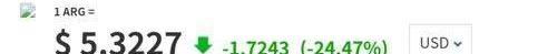 在阿根廷隊敗北后,ARG幣暴跌至3.8235,跌幅一度近40%。隨后幣價回升至5.32美元附近,跌幅收窄至24%左右。