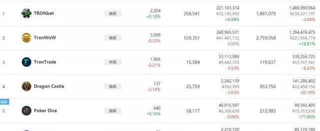 基于波場區塊鏈的前十名DApp的7天總交易額為:5.911億人民幣